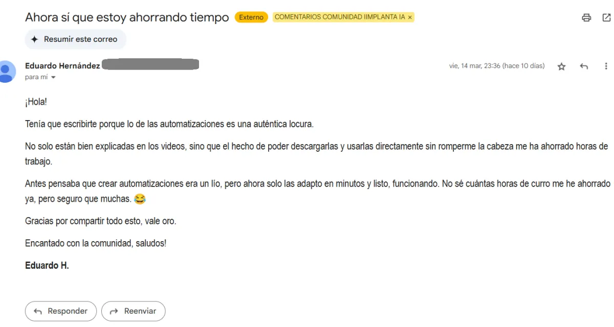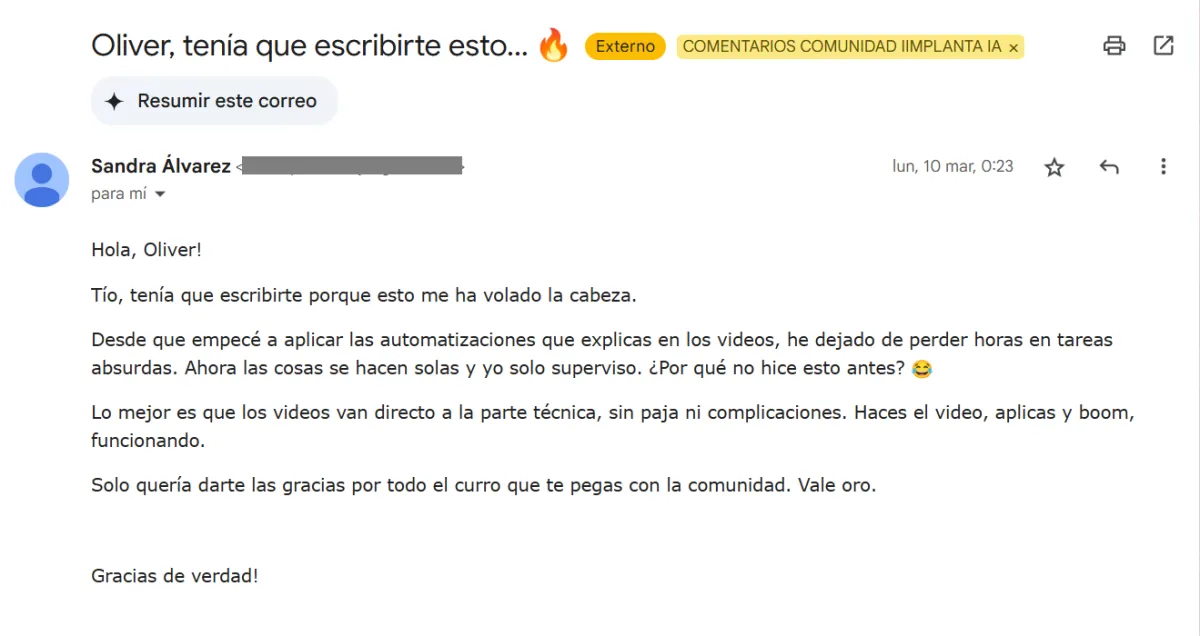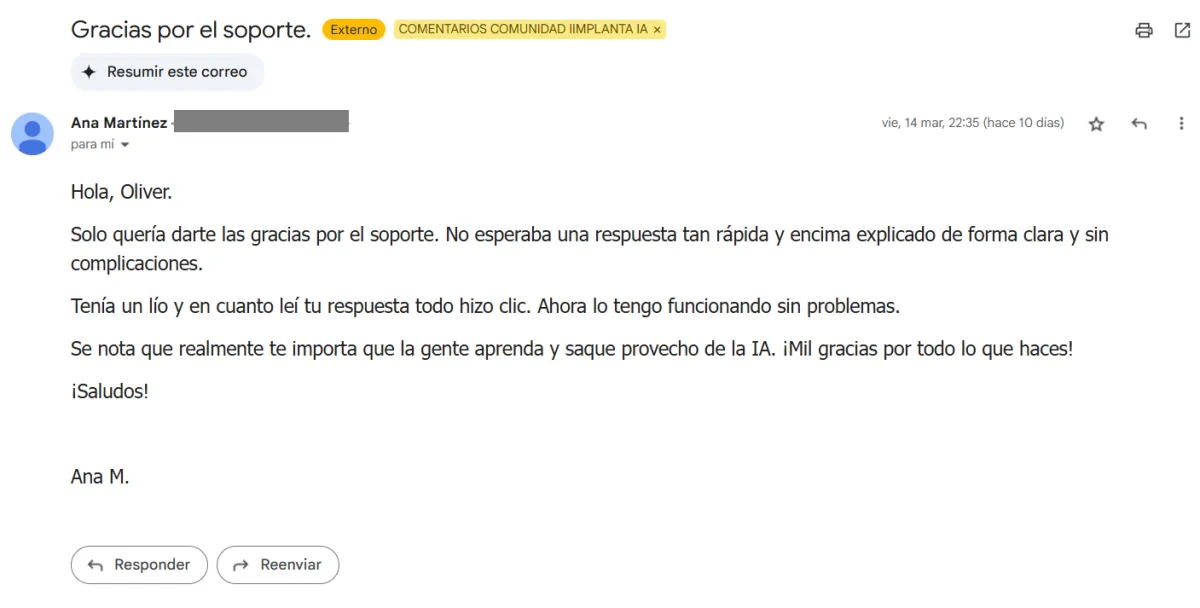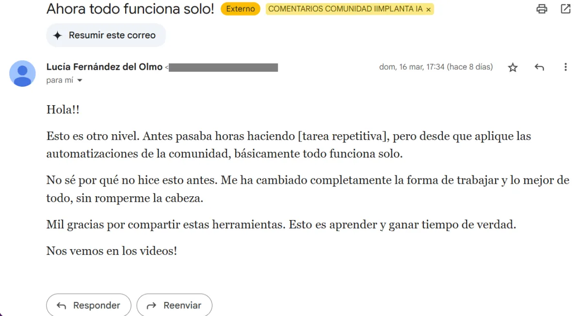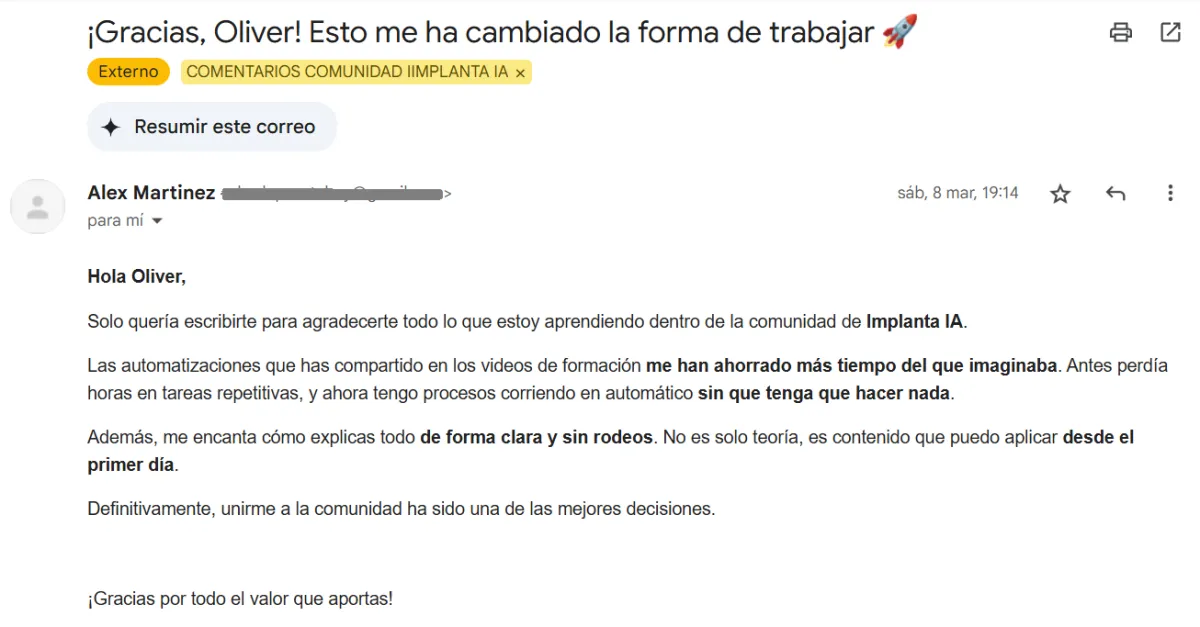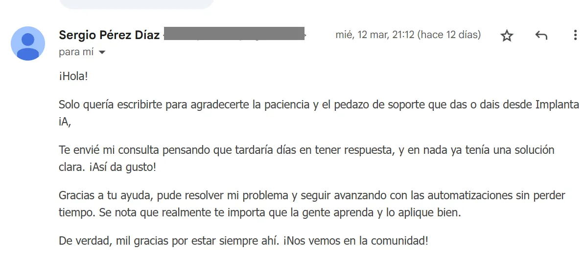 Por eso hemos creado Implanta IA, la única comunidad donde te llevamos de la mano para que pases de la teoría a la acción sin perder tiempo ni dinero.